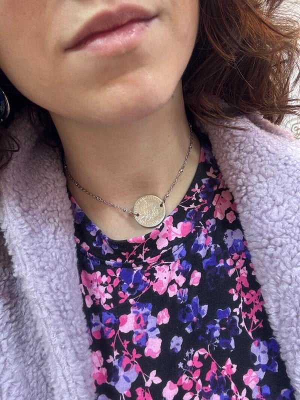 Une pièce qui nous rappelle la nostalgie de ces années avant 2000 transformée en joli collier.
