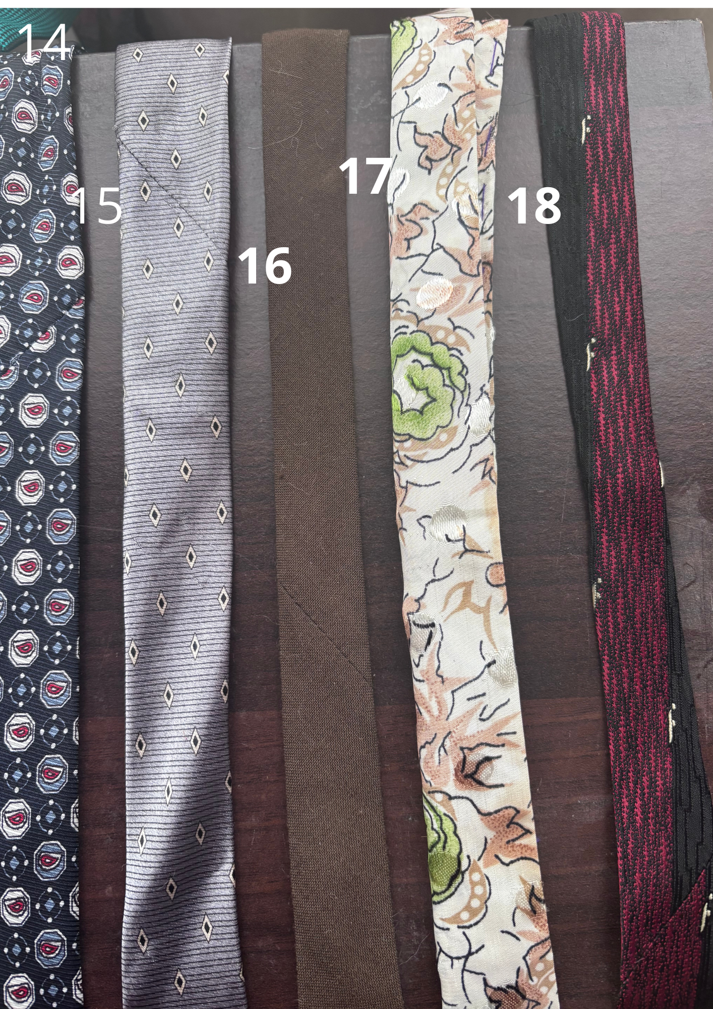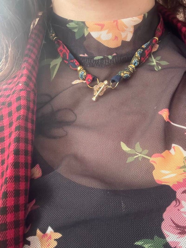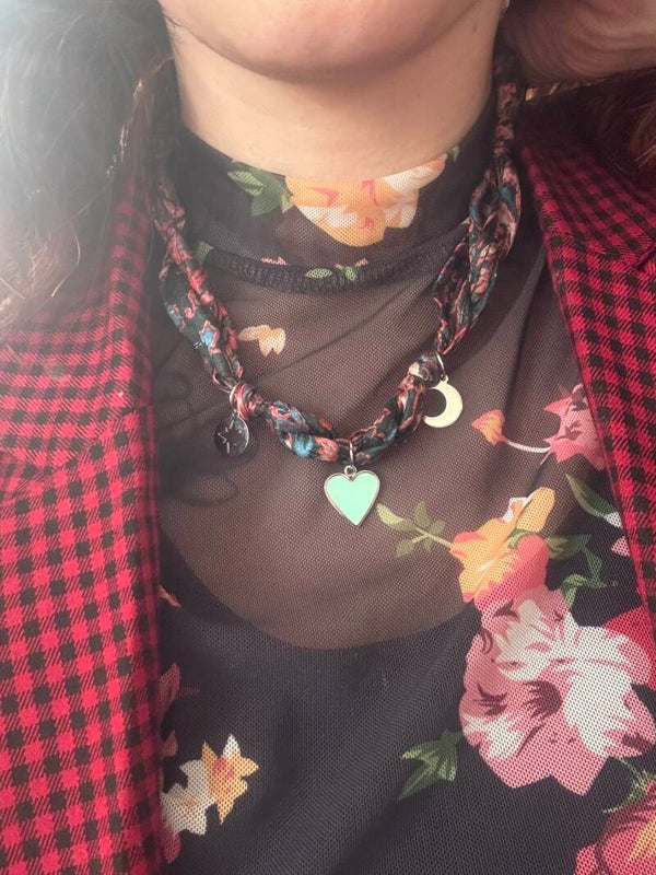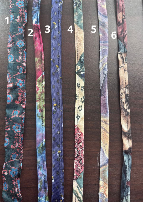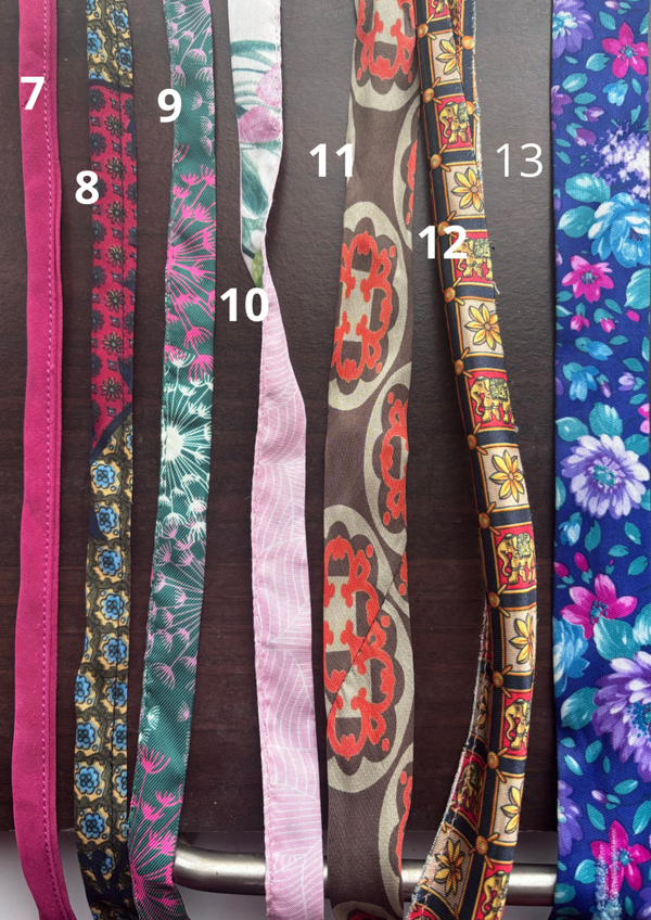 Sachez que tous nos tissus sont aussi issus de surcyclage. C'était des cravates! Cet accessoire dépassé de mode, plus utilisé par nos chers et tendre, devient un bijoux fabuleux.
