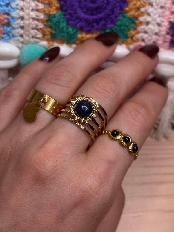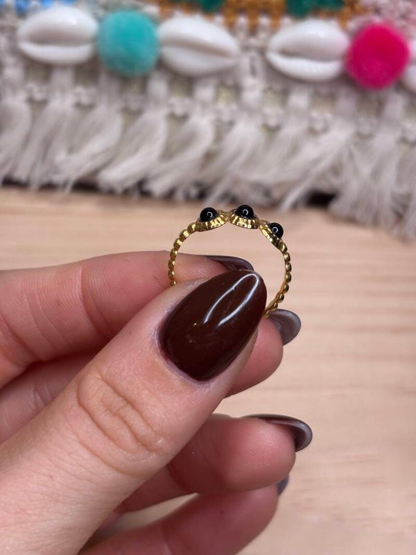Très jolie bague minimaliste avec ces trois petites pierres noires.